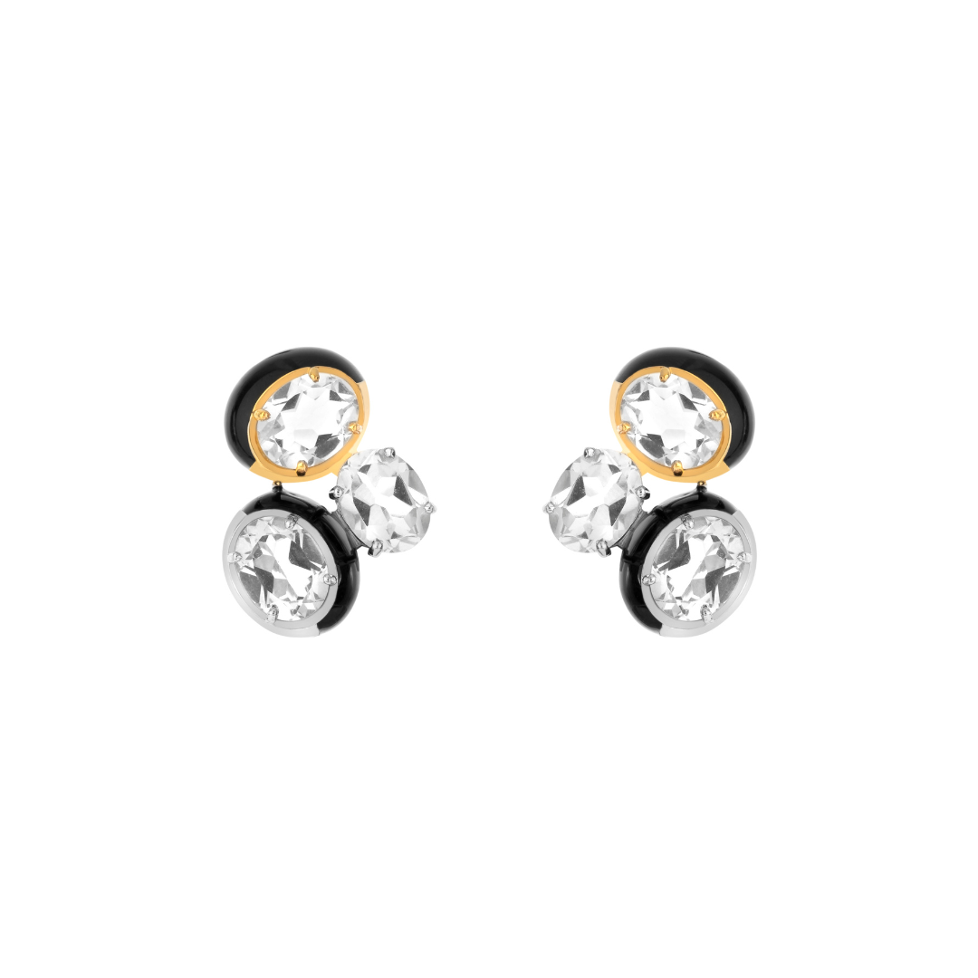 O destaque está nas três pedras de topázio incolor, lapidadas para revelar máxima luminosidade, em perfeita harmonia com detalhes em esmalte a fogo, técnica artesanal que adiciona cor, textura e exclusividade a cada criação.