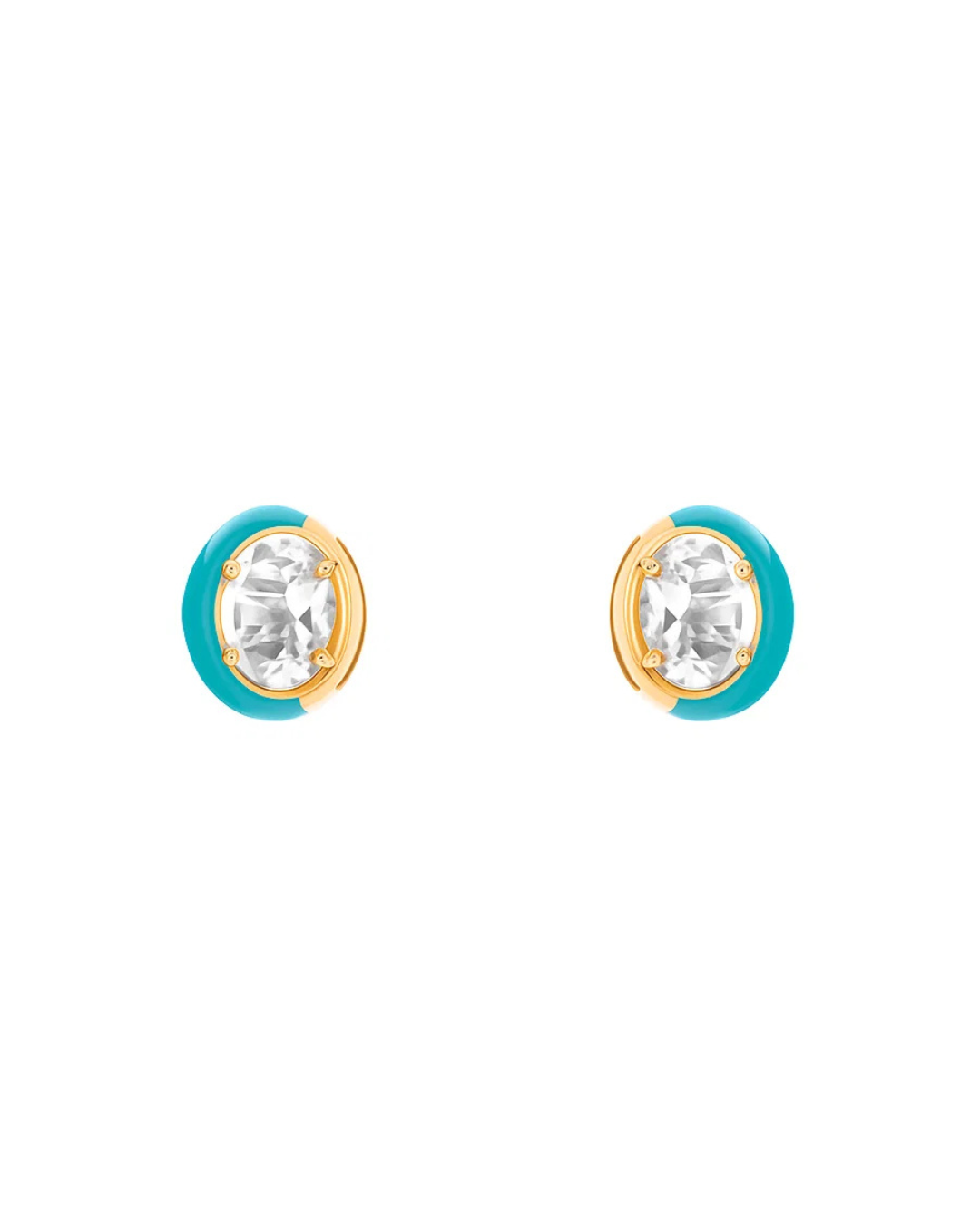 Brinco Tinted Solitário – Tira e Põe em Ouro 18k com Pedra Topázio incolor e Esmalte Personalizável