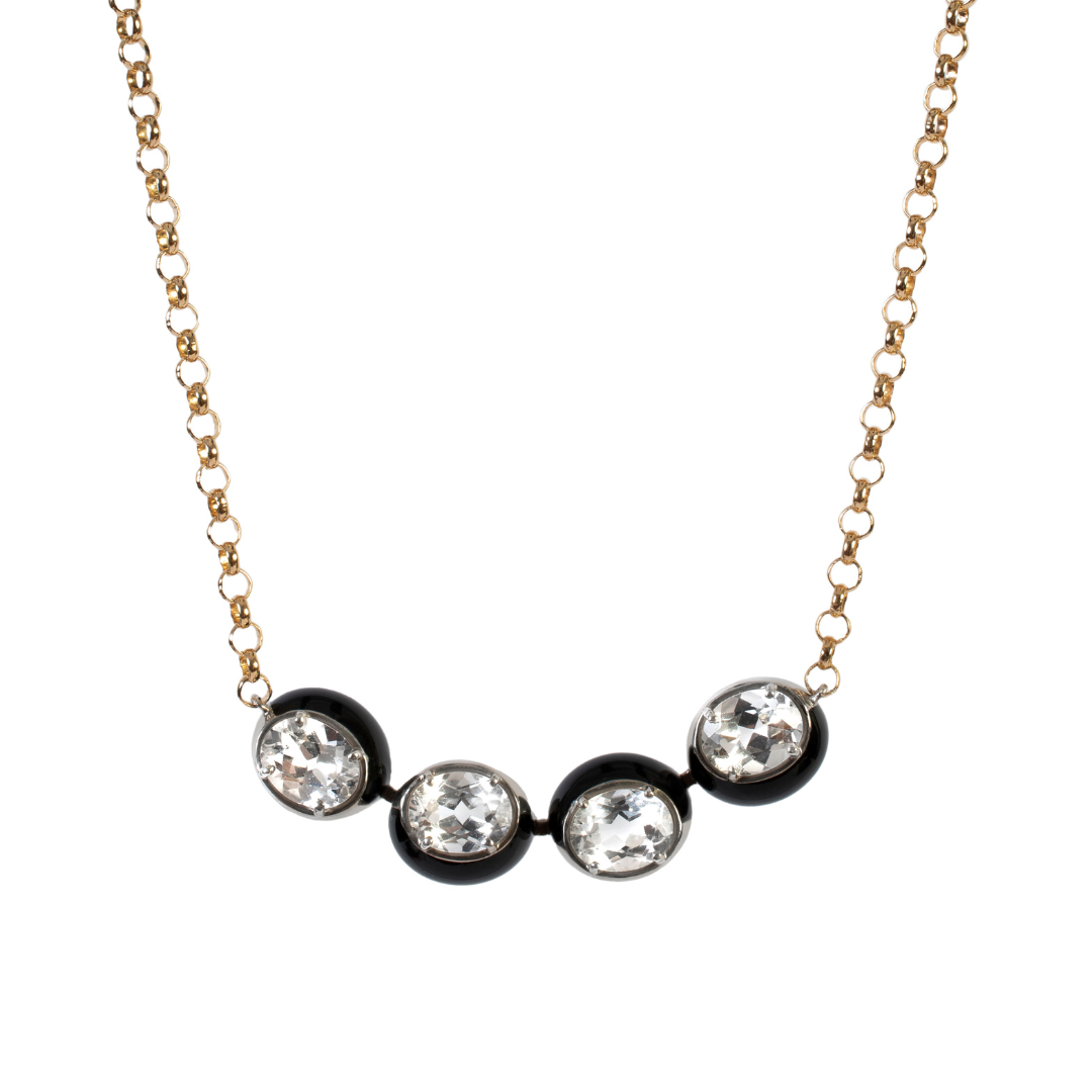 Colar Tinted em prata 950 com banho de ródio, corrente em ouro 18kt, com pedras naturais: Topázio Swiss ou Topázio incolor e esmalte